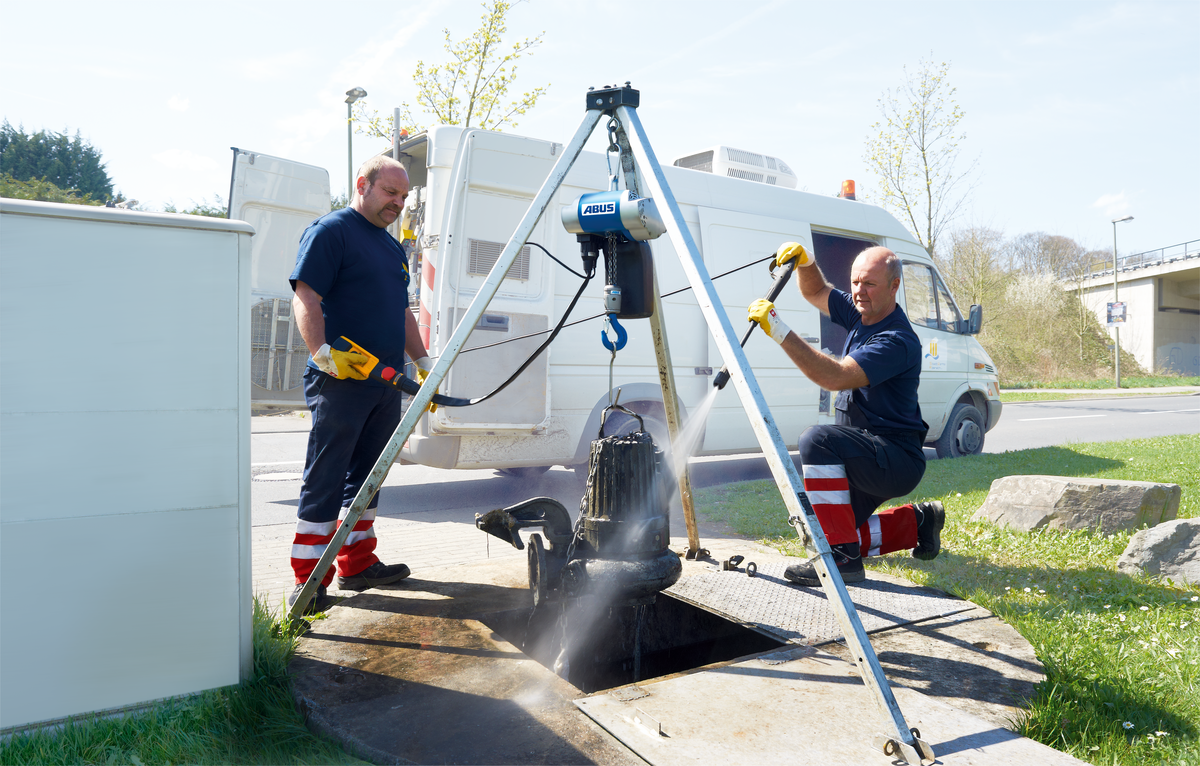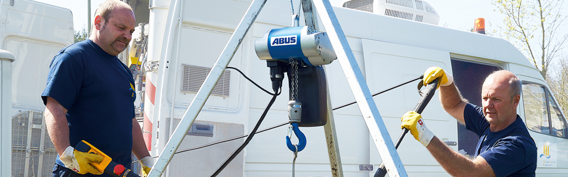 Über den aufklappbaren Aufhängebügel lässt sich der ABUCompact GMC einfach stationär befestigen oder mit einem Handfahrwerk betreiben.