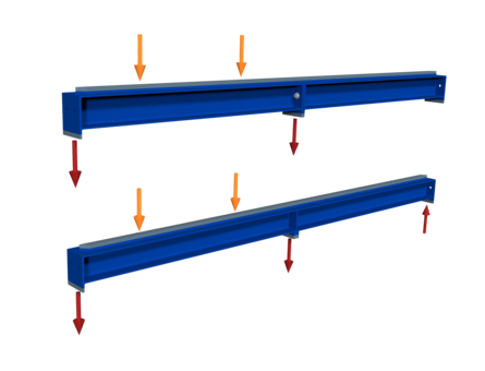 Im Stahlbau gibt es verschiedene Lösungen, um alle Anforderungen im Bestand oder Neubau zu erfüllen. Diese Lösungen können für einzelne Kranbahnträger oder vollständige Anlagen am Boden und an der Decke erforderlich sein. Die konstruktiven Maßnahmen helfen beispielsweise Material einzusparen, oder die Belastung eines Gebäudes zu reduzieren. Ein einfaches Beispiel ist der Vergleich zwischen Ein- und Mehrfeldträgersystemen für die Kranbahn auf bauseitigen Konsolen.