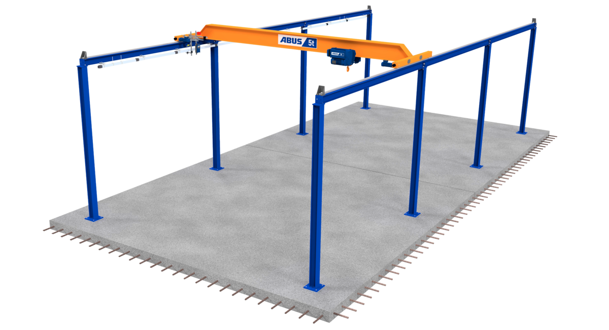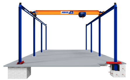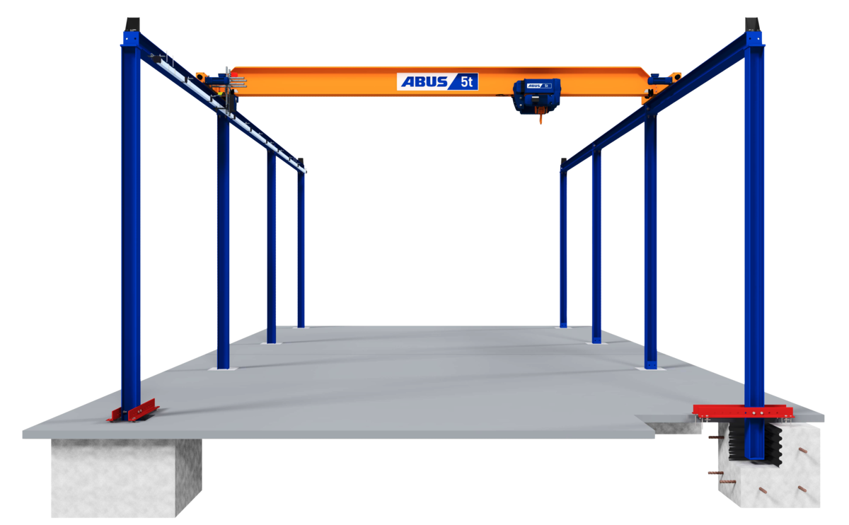 Um Störkonturen am Boden weiter zu minimieren, können bauseits Köcherfundamente vorgesehen werden, in denen die Füße der Einspannstützen vergossen werden. ABUS definiert schon in der Angebotsphase die maßgebenden Kräfte und informiert über die notwendigen Platzverhältnisse für eine sichere und fachgerechte Montage. Kranbahnen werden in der Regel verlängerbar ausgeführt. Bei Bedarf können auch passgenaue Überstände für optimierte Anfahrmaße oder Stützenpositionen eingesetzt werden. Dies hat Einfluss auf die resultierenden Kräfte und wird auftragsbezogen ermittelt. So wird jedes Element der Anlage auf die örtlichen Gegebenheiten abgestimmt.