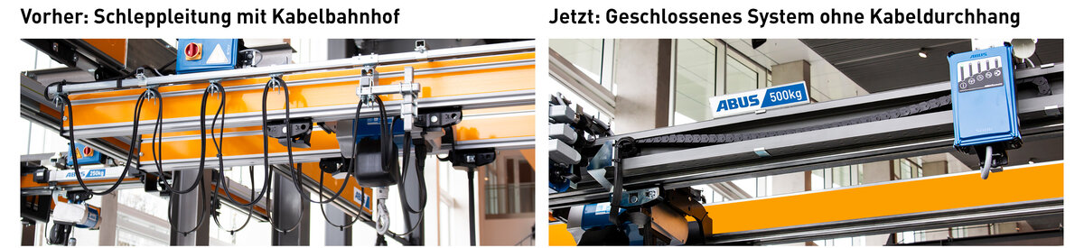 Unsere Hängebahnsysteme bieten eine überzeugende Effizienz und Flexibilität am Arbeitsplatz. Mit ihren Stahl- und Aluminiumprofilen ermöglichen sie einen effizienten Transport von Werkstücken mit geringem Eigengewicht, was schnelle Positionierungen und leichtgängige Kranbewegungen ermöglicht. Die modulare Bauweise erlaubt eine gute Anpassung oder Erweiterung der Hängekrananlage entsprechend den sich ändernden Anforderungen im Material- und Produktionsfluss. ABUS bietet mit seinen Hängebahnen ein breites Leistungsspektrum in Flexibilität, Qualität, Technik und Wirtschaftlichkeit. Die Integration von Elektrokettenzug und die Anpassungsfähigkeit der Krananlagen machen ABUS zum verlässlichen Partner für individuelle Krantechnik. In Kombination mit der neuen ABUPowerline erhalten Sie Effizienz, Flexibilität und Präzision in jeder Bewegung. Eine Innovation, die den Unterschied macht!