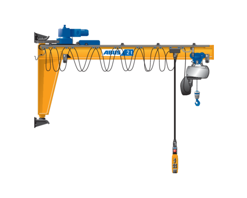 Durch die Bauart Wandschwenkkran VW können die Hallenmaße so ausgenutzt werden, dass dabei eine möglichst hohe Hubhöhe für das Übersetzen der Last erreicht wird. Wandschwenkkrane der Bauart VW werden mit kräftigen und bewährten ABUS Seilzügen ausgestattet und verfügen Serienmäßig über eine verfahrbare Steuerung.