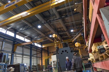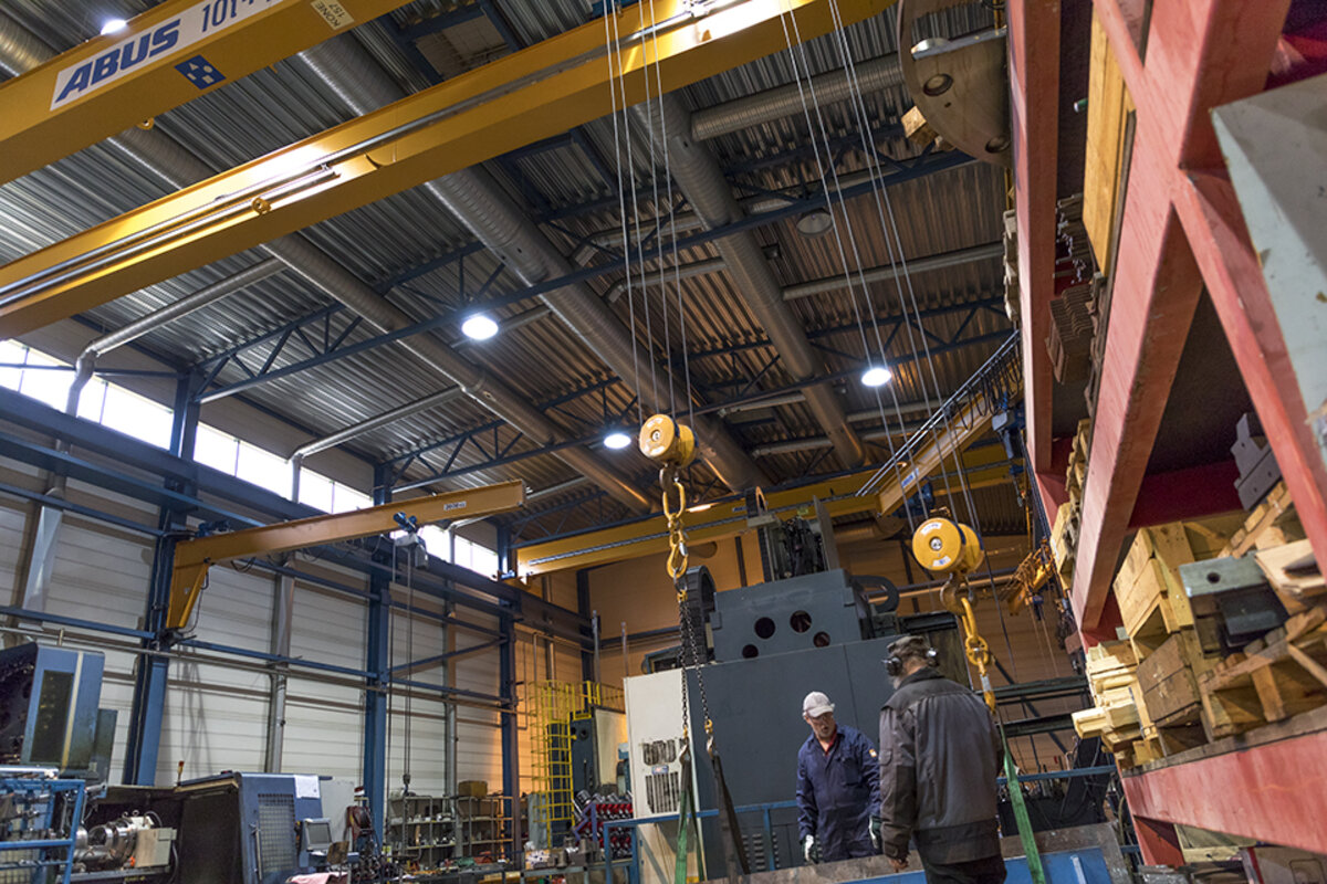 Konepaja Ennes Kranbediener schätzen die Zuverlässigkeit, die Wartungsfreundlichkeit und die Benutzerfreundlichkeit der verschiedenen ABUS Krane, ob es sich nun um die sieben VW Wandschwenkkrane handelt, die jeweils eine Tragfähigkeit von 2 Tonnen haben und alle elektrisch verfahrbare Hebezeuge haben und ebenfalls elektrisch schwenkbar sind, oder um einen der beiden ELV Einträgerlaufkrane mit einer Traglast von 4 Tonnen. Weitere Hebezeuge, die in der Fertigung eingesetzt werden, sind zwei elektrische Seilzüge Typ D, von denen einer eine Tragfähigkeit von 10 Tonnen hat, während der andere 13,5 Tonnen heben kann. Diese Zweischienenlaufkatze Typ D ist die kompakte ABUS Standardkatze für Einsatzfälle in der mittlere Beanspruchungsgruppe für Lasten bis zu 63 t.