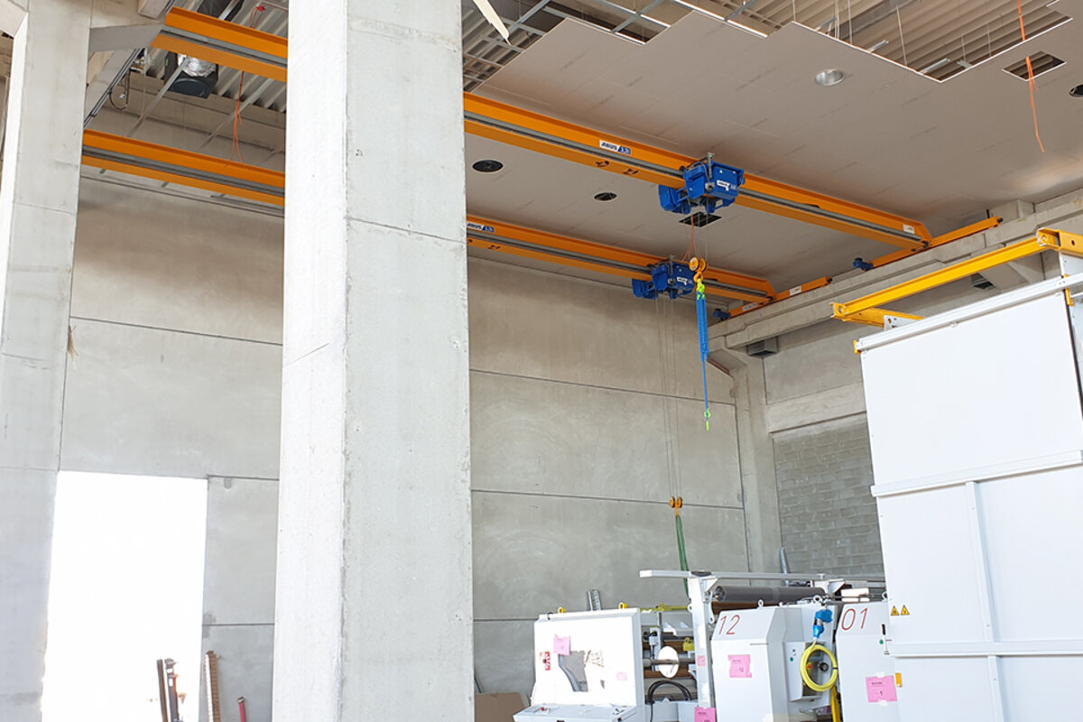 Da die Krane während der Bauphase der Halle installiert wurden, konnten sie sogar schon für die Montage der Produktionsmaschinen eingesetzt werden, bevor die eigentliche Fertigung aufgenommen wurde.