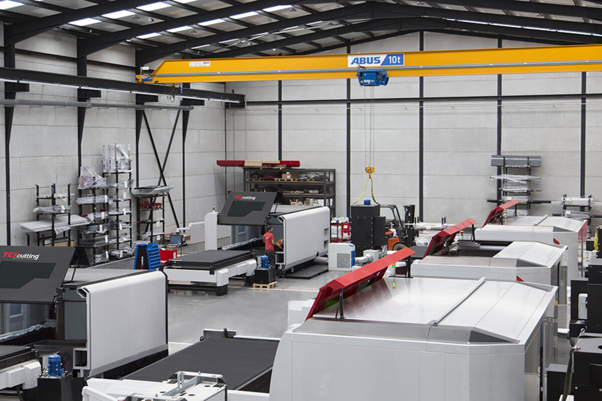 ABUS Laufkrane bei TCI Cutting, Weltmarktplayer für Laserschnitt und Wasserstrahlschneidemaschinen