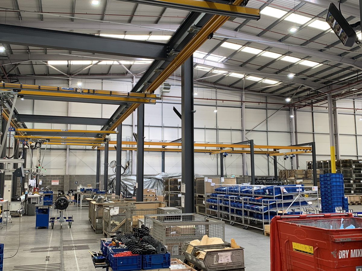 Um die Fertigung der Achsen in Großbritannien zu unterstützen, lieferte die britische ABUS Tochtergesellschaft ABUS Crane Systems Ltd. zwei Leichtkrananlagen mit jeweils mehreren Kranbrücken und Tragfähigkeiten von 250 kg, 500 kg und 630 kg sowie einen Schwenkkran mit einer Tragfähigkeit von 800 kg SWL als Ergänzung zu Deckenlaufkranen, ebenfalls mit 800 kg Tragfähigkeit, die von einem anderen Standort verlegt wurden.